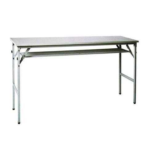 Bàn thiết kế gấp gọn khi không sử dụng, không yếm khung thép sơn tĩnh điện. Mặt bàn gỗ melamine ghi, ngăn bàn tạo bởi các nan ống thép. Bàn được thiết kế có ngăn hay không ngăn.