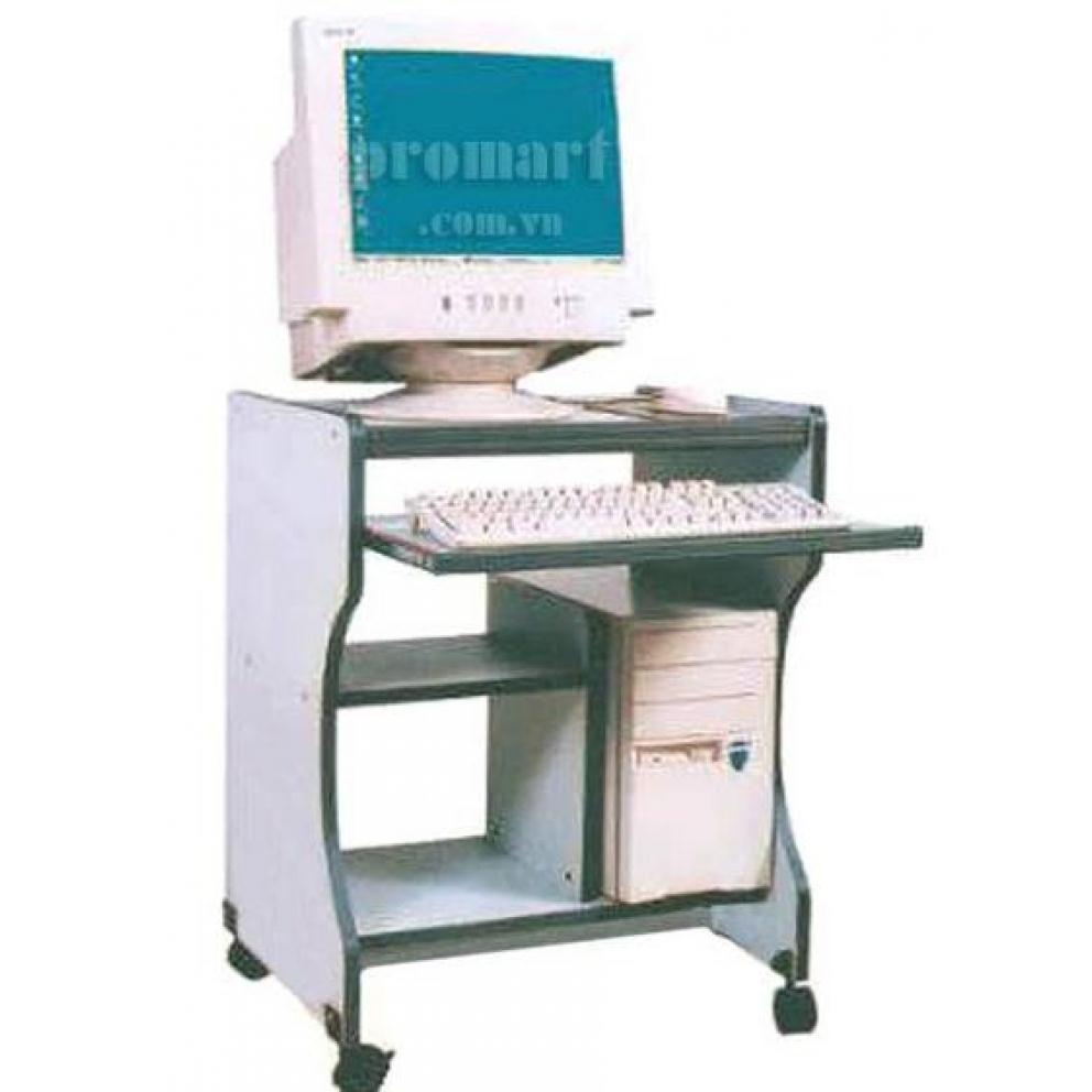 Bàn máy tính gỗ công nghiệp màu vàng, có bàn phím trượt