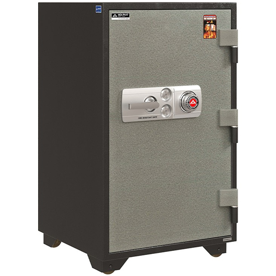 - Dòng Két đứng có 2 khóa chìa, khóa mã, tay nắm, mặt nạ hộp nhựa.