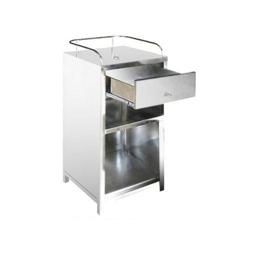 Tủ y tế dùng trong bệnh viện, gồm 3 phần: 1 ngăn kéo, 1 khoang trống, 1 cánh mở, có thanh chặn trên mặt tủ tránh rơi đồ. Sản phẩm được lắp ráp nguyên chiếc, khung tủ ống Inox vuông 25 x 25 mm.